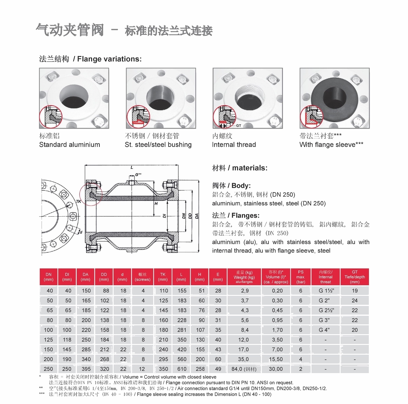 ◆所有的法蘭式夾管閥的外殼均呈扁平的橢圓形,因此保證了較低的壓縮空氣消耗,這不僅意味著可以節省能源,而且同時也確保了氣動夾管閥預定的唇形彎折方向。
