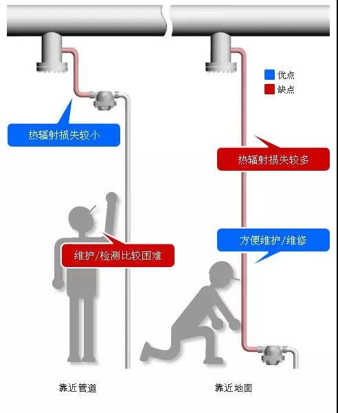缺點(diǎn):作為蒸汽主管的延伸,向下的垂直管道越長意味著熱輻射損失越多。(在不影響疏水閥運(yùn)行的前提下,可以通過安裝保溫來減少熱輻射損失)