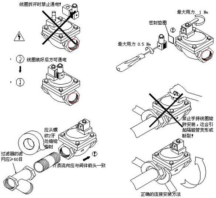 進口電磁閥安裝維護基本操作示意圖