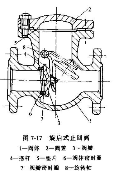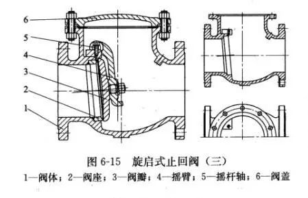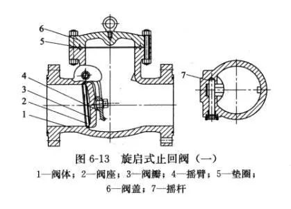 01單瓣式(圖6-11)只有一個閥座通道和一個閥瓣,適用于中等口徑旋啟式止回閥。
